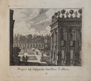 Kusel (Melchior) Recueil de 3(sur 40) planches gravées (principalement vues d’Italie). 1681. Planches montées en un album inoblong demi-vélin.