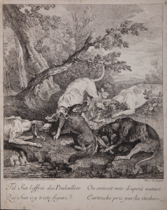 Ensemble de 20 planches gravées sur cuivre du XVII° et du XVIII° par Israël Silvestre, ou d’interprétation d’après des tableaux de Wouvermans. 2 eaux-fortes de Oudry de format in-folio, vue de Stenay sur double planches in-folio. Le Louvre...