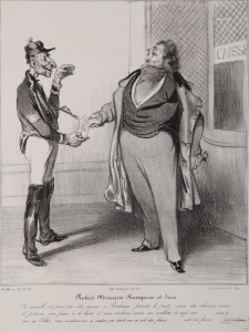 Daumier - CHAM... Caricatures. Carton renfermant 106 lithographiesde la série “Actualités” tirées chez Aubert ; 100 planches de la série des “Robert-Macaire”, Caricaturama. Planches du“Charivari” verso imprimé.