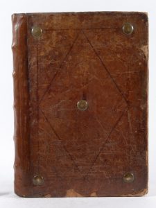 in-folio, veau fauve croisilloné, sur les plats encadrements et losange de filets à froid, bouillons et ombilic métalliques, dos à larges nerfs, traces de fermoirs, [Rel. du XVIIIe s.], dos refait.