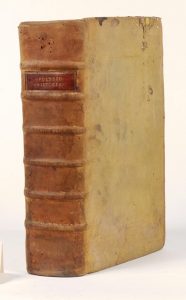 fort vol. pet. in-folio, basane moutarde, encadrements de filets à froid sur les plats, dos à nerfs, pièce de titre acajou, [Rel. de l'époque], plats entièrement épidermés donnant un aspect de peau suédée.