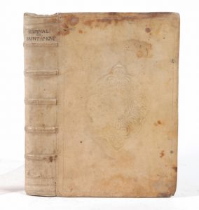 fort vol. gr. in-4, vélin ivoire, large médaillon central estampé à froid, dos à nerfs, titre manuscrit, traces de lacets, [Rel. de l'époque].
