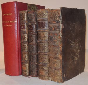 • VILLEFORE (M. de). La Vie de sainte Thérèse, tirée des auteurs originaux espagnols et des historiens contemporains. Paris, Jacques Estienne, 1712 ; in-4, veau marbré, dos à nerf orné de motifs dorés, [Rel. de l'époque], coiffes arasées, coins émoussés.