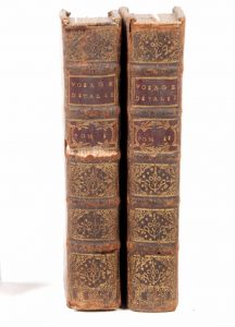 2 vol. (sur 3) in-12, veau marbré, dos à nerfs orné de motifs dorés, pièces de titre et de tomaison rouge sombre, [Rel. de l'époque], petits frottements, légers manques de matière à un vol.