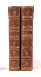 Édition au format in-4, la plus belle et rechérchée. C’est la dernière édition enrichie et corrigée par Rollin lui-même. Déchirure réparée au premier f. de titre, sans manque. Bon exemplaire, à belles marges, provenant de la bibliothèque du maréchal de Rohan Soubise, avec ses pièces d’armes (macles et hermines) dorées au dos.