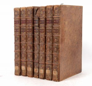 7 vol. in-folio, veau marbré, encadrement de trois filets dorés sur les plats, dos à nerfs orné de motifs dorés, pièces de titre et de tomaison vieux rouge, tranches marbrées, [Rel. de l'époque].