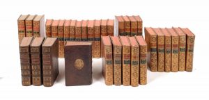 13 vol. in-12, basane marbrée, dos long orné de motifs dorés, pièces de titre acajou ou marron et de tomaison verte, [Rel. de l'époque], quelques légers frottements.