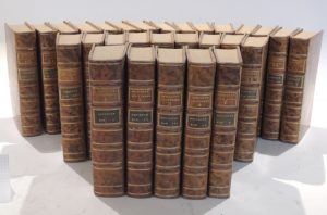 100 vol. pet. in-8, basane marbrée, dos à nerfs orné de filets dorés, [Rel. de la toute fin du XVIIIe s.] infimes et rares accrocs.