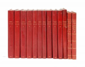 11 vol. in-8, bradel demi-maroquin à long grain carmin, titre doré au dos, non rogné, [Rel. du XIXe s.], quelques très légers frottements en mors.