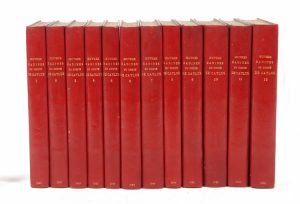 12 vol. in-8, bradel demi-cuir de Russie écarlate, non rogné, [Rel. du XIXe s.].