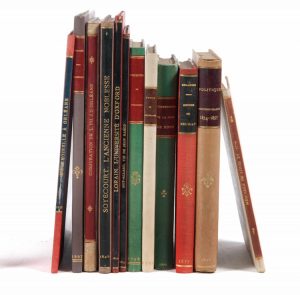 • Généalogie de la maison de Roquelaure, tirée du volume VII de l’Histoire généalogique & chronologique des grands officiers de la Couronne, &c. Paris, veuve Thiboust, 1762 ; in-8, bradel demi-vélin ivoire, pièce de titre marron au dos, [V. Champs].