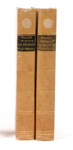 Ensemble complet des deux volumes de texte, sans l’Atlas. Certains ff. brunis uniformément.