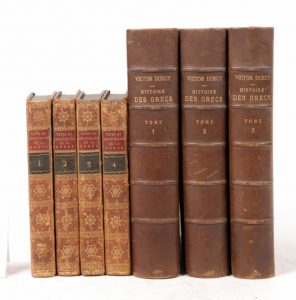 • DURUY (Victor). Histoire des Grecs depuis les temps les temps les plus reculés jusqu'à la réduction de la Grèce en province Romaine. Paris, Libraire Hachette, 1887-1889 ; 3 forts vol. in-4, demi-chagrin marron, dos à nerfs, tête dorée, non rogné, [Rel. de l'époque], dos très lég. frottés.