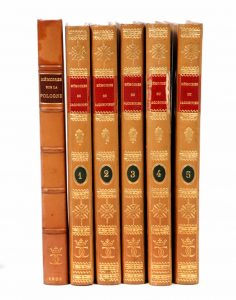 5 vol. in-8, demi-veau fauve, dos long orné de motifs dorés, monogramme en pied, pièces de titre rouges et de tomaison ovales vertes, [Dupré, H. Vincent Succr.], accrocs à une pièce de titre.