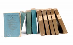 5 (sur 6) vol. in-8, brochés, couverture d’attente muette grise, non coupés.
