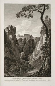 Louis-François Cassas (1756-1827), élève de Lagrenée le jeune et de Le Prince, y avait séjourné à l’été 1782 à la demande d’une société d’amateurs des beaux arts, des magnifiques tableaux de la nature, et de pompeux débris de l’antiquité, afin d’y dessiner les sites et les antiquités de cette contrée encore peu familière des Européens occidentaux.