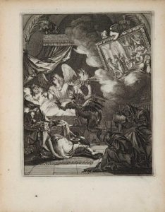 Première édition de la traduction hollandaise de ce beau livre illustré baroque, entièrement gravé en taille-douce, contenant un titre gravé, 9 feuillets de texte et 42 superbes et saisissantes planches de Romain de Hooghe numérotées de 1 à 39, A, B et C, série de tableaux sur les circonstances de la mort du Christ pour servir au chrétien d’exemple et d’engagement à une sainte fin.
