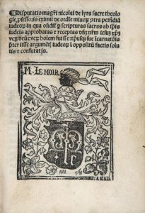 NICOLAS DE LYRE. Disputatio [...] [con]tra perfidia[m] Judeo[rum] [...] [=Quaestiones disputatae contra Judaeos]. S.l.n.n. [Paris, Michel Le Noir], s.d. [vers 1495].