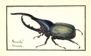 TRES BEAU RECUEIL COMPOSE DE 28 REMARQUABLES AQUARELLES DU XVIIIE SIECLE représentant au total 74 papillons et insectes divers : le bombyx du chêne, des papillons sphynx, le grand paon, des scorpions aquatiques, lucanes, le scarabée Hercule (Dynastes hercules), le grand capricorne noir, des criquets, sauterelle, etc.