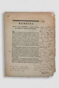 Rare note autobiographique concernant des faits mal connus de la vie du jeune Étienne Geoffroy Saint-Hilaire.