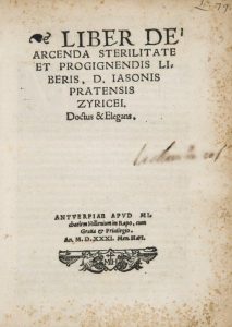 PRATENSIS (Jason). Liber de arcenda sterilitate et progignendis liberis. Anvers, Michel Hillenium in Rapo, 1531.
