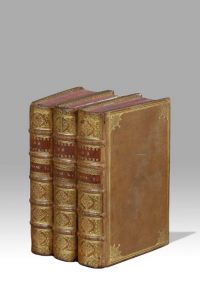 3 volumes in-8, veau blond, triple filet doré se croisant aux angles, écoinçons, dos orné, pièces de titre et de tomaison rouges, roulette dorée intérieure, tranches rouges (Reliure de l'époque).