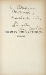 COCTEAU (Jean). Thomas l'imposteur. Histoire. Paris, NRF, 1923.