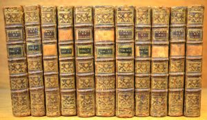 Paris, V. Brunet, 1761 (vol. 9-10), et Paris, Les Libraires associés, 1766 (vol. 11), portr., [4]-VIII-568 p., 2 fig. ; front., [4]-406 p., 1 pl. dépl., 1 fig. ; front., [4]-386 p., 1 fig. ; front., [4]-408 p., 3 fig. ; front., [4]-570 p. ; front., [4]-374-[2] p. ; [4]-XLIV-[2]-456-[1]-1 blanche p. ; [4]-388-[1]-1 blanche p. ; [4]-XL-433-[2]-1 blanche p. ; [4]-80-408 p. ; XII-LXXII-315-1 blanche p., reliure uniforme en plein veau brun moucheté, dos à nerfs décorés, pièces de titre et de tomaison (2 pièces de titre et 4 pièces de tomaison manquantes, qq. coiffes arasées, traces d'usure, qq. mors fendus, légères brunissures). Ensemble bien complet.
