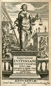 Imperatoris Justiniani Institutionum libri IV. Adjecti sunt ex Digestis Tituli de verborum significatione, et de Regulis Juris. Cum Indice ad eosdem. Antverpiae, Sumpt. Henrici et Corneli Verdussen, 1696,