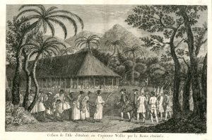 TAHITI.- Ensemble de 6 gravures sur cuivre extraites de la "Relation des voyages dans l'hémisphère méridionale" par James Cook (édition française de 1774). Le Capitaine Wallis a découvert Tahiti en juin 1767.