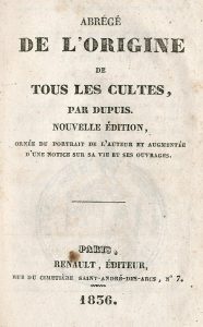 Abrégé de l'origine de tous les cultes. Nouvelle édition ornée du portrait de l'auteur et augmentée d'une notice sur sa vie et ses ouvrages. P., Renault, 1836,