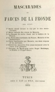 Mazarinades.- Mascarades et farces de la Fronde (en 1649). Turin, J. Gay et Fils, 1870