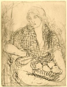 CARTES POSTALES. "La Femme à la corbeille". Eau-forte originale en noir telle que publiée dans la "Revue de l'Art ancien et moderne".