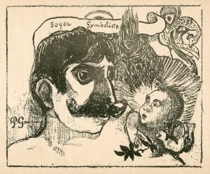 GAUGUIN (Paul). "Soyez symboliste" (1891). ). Portrait de Jean Moréas publié dans la revue "La Plume" du 1er janvier 1891 (on ne connait pas d'autres tirages). Portrait-charge du poète Jean Moréas qui fonda le mouvement symboliste en 1886.