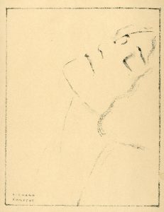 KHNOPFF (Fernand)."Profil" (1921). Lithographie originale en noir tirée sur papier crème et contrecollée sur papier gris, telle que publiée dans la revue "L'Art belge" (noël 1921).