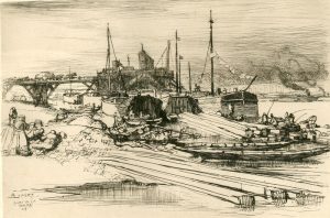 Ensemble de 3 eaux-fortes originales en noir, telles que publiées dans la "Revue de l'Art ancien et moderne" et la "Gazette des Beaux-Arts". Dim. support : (3 x) +/- 20 x 28 cm ; sujet : (3 x) +/- 14 x 20 cm.
