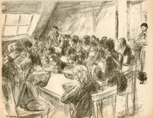 LIEBERMANN (Max)."Kriegsvolksküche" (1909). Lithographie originale en noir sous serpente légendée, telle que publiée dans la revue "Kunst und Kunstler" en septembre 1909. Dim. support et sujet : 24 x 31 cm./ IDEM. "Strand in Noordwijk" (1915)....