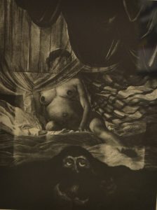 MARCHOUL (Gustave)."Qui sera-t-il ?" (1974). Manière noire et héliogravure tirée sur Auvergne, titrée, just. 7/15, signée et montée sous cadre en bois.