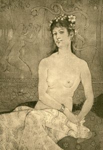 RASSENFOSSE (Armand)."Eva" (1894). Vernis mou, pointe sèche, aquatinte et roulette tiré sur vergé de Hollande, monogrammé dans la planche et monté sous passe-partout crème.