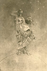 "La Prostitution et la Folie dominant le monde" (Les Diaboliques). Vernis mou tiré sur vélin crème, signé au crayon rouge et monté sous passe-partout. Dim. support : 52 x 34 cm ; sujet : 28,3 x 20,3 cm (légère décharge de passe-partout)....