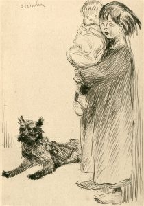 STEINLEN (Théophile-Alexandre). "La Grande Soeur" (1913). Pointe sèche originale en noir tirée sur vergé filigrané, telle que publiée dans la "Gazette des Beaux-Arts" le 1er octobre 1913.