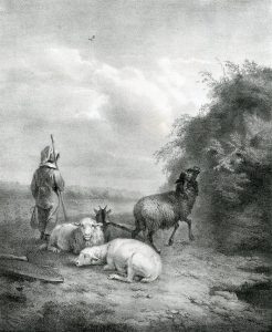 VERBOECKHOVEN (Eugène)."Le Pâtre" (1841). Lithographie originale en noir telle que publiée dans la revue "La Renaissance".
