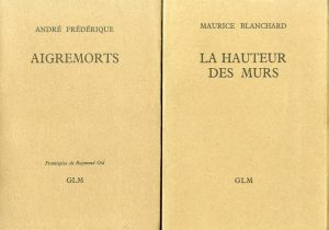 BLANCHARD (Maurice). La Hauteur des murs. P., GLM, 1947, in-12, br., non coupé. Tiré à 500 ex. num. 1/25 ex. marqués de A à Z sur vélin de Renage, signés par l'éditeur./ FREDERIQUE (André). Aigremorts. Front. de Raymong Gid. Même édit.,...