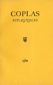 in-16, br., non coupé. Tiré à 880 ex. num. 1/832 alfa Cellunaf./ Coplas espagnoles. Trad. par Guy Lévis Mano. Front. de Vilato. Même édit., 1949, in-16, br. Tiré à 1023 ex. num. 1/640 vélin./ Romance du comte Alarcos et de l'Infante Solisa. Texte espagnol et traduction par Guy Lévis Mano. Même édit., 1947, in-16, br. Tiré à 585 ex. num. 1/25 ex. marqués de A à Z sur vélin, signés par l'éditeur./ Cantes flamencos. 36 coplas choisies et traduites par Guy Lévis Mano. Même édit., 1955, in-16 oblong, br., non coupé. Tiré à 1075 ex. num. sur vélin de Renage./ Ens. 4 vol.