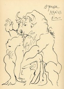 PICASSO.- CHAR (René). Dépendance de l'adieu. Avec un dessin de Picasso. P., GLM, "Repères", 14, 1936,