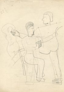 BRUSSELMANS (Jean).Portrait de René Verboom. Esquisse au crayon montrant Verboom entouré de 2 personnages.