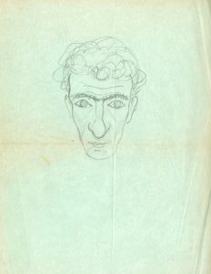 PORTENART (Jeanne). Portrait de René Verboom. Esquisse originale au crayon, non signée, sur fin papier vert (déchirure marginale). Jeanne Balter est le peintre Jeanne Portenart (Bruxelles, 1911 - 1991),