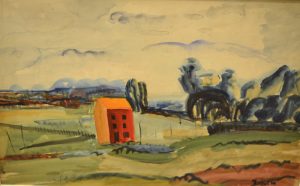 Aquarelle sur papier Canson, montée sous passe-partout de soie grège et cadre doré en bois. Dim. cadre : 53 x 69 cm ; sujet : 35 x 52 cm (pet. déchirures au bord infér.).