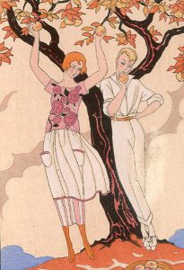 Quatrième année. Paris, Meynial, in-32, 128 p., cartonnage de soie argentée, décoré sur les plats d'une frise fleurie, et d'une composition sur le premier plat, tranches dorées, gardes de papier imprimé au pochoir, jaquette et étui décorés (jaq. et étui défraîchis avec traces de manipulation). L'almanach lui-même est en parfait état. Imprimé par P.L. Schmied. Ravissant almanach entièrement décoré par George Barbier : couverture, 6 compositions en couleurs hors texte et nombreux bandeaux en noir et turquoise. Textes de la comtesse de Noailles, Albert Flament, Jean-Louis Vaudoyer.