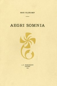 4°; br. (minimes rousseurs). Edit. sur Featherweight sans les ill. de Margot Weemaes./ IDEM. Aegri somnia. Anvers, Buschmann, 1924, 8°, 57 bois de l'auteur, br. Édit. orig. tirée à 250 ex. num. 1/200 Featherweight./ Ens. 2 vol.